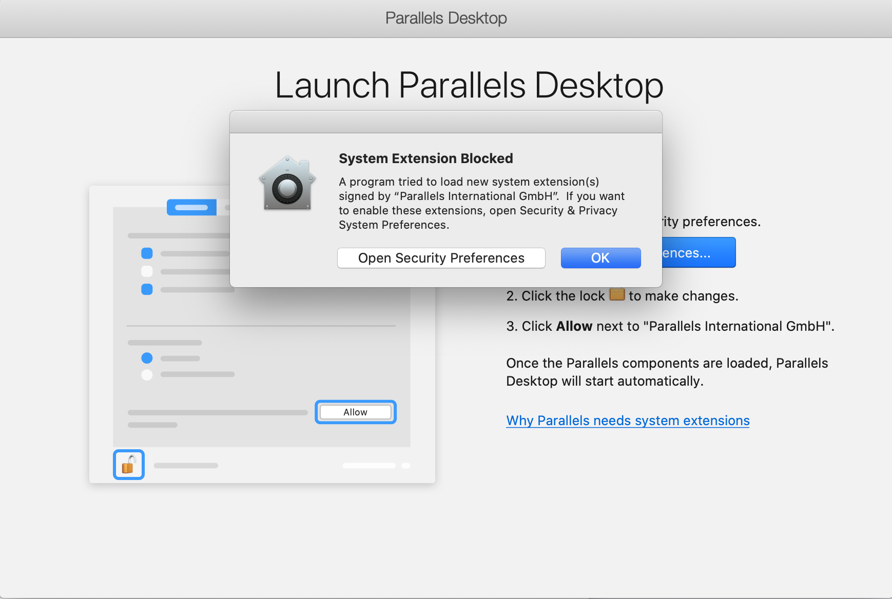 As you install Parallels App, a number of "Security Warnings" will appear. Approve all of these security warnings. Parallels is a world-class app used by millions.